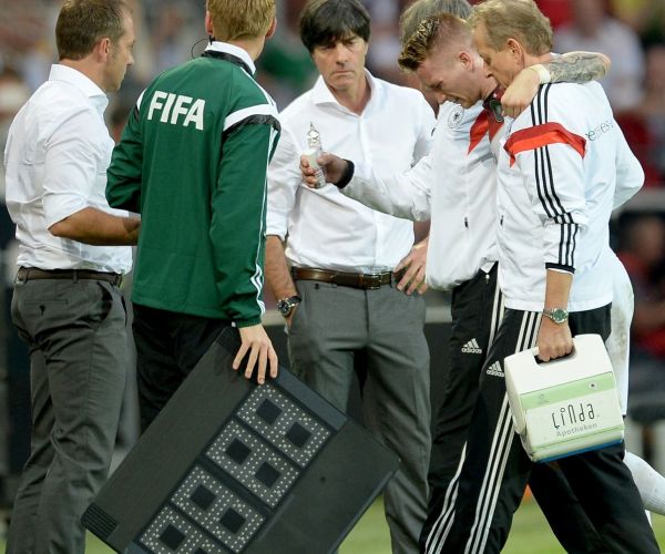 Reprezentacja Niemiec pokonała Armenię aż 6:1 w ostatnim meczu towarzyskim przed Mundialem w Brazylii. W 44 minucie na murawę padł Marco Reus który doznał urazu co wyeliminował go z gry na Mistrzostwach